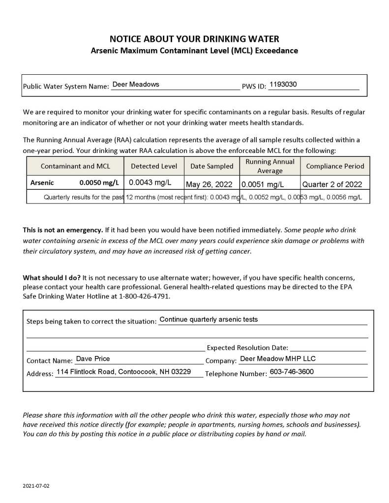 Notice issued August 9, 2022 regarding Quarter 2 Arsenic